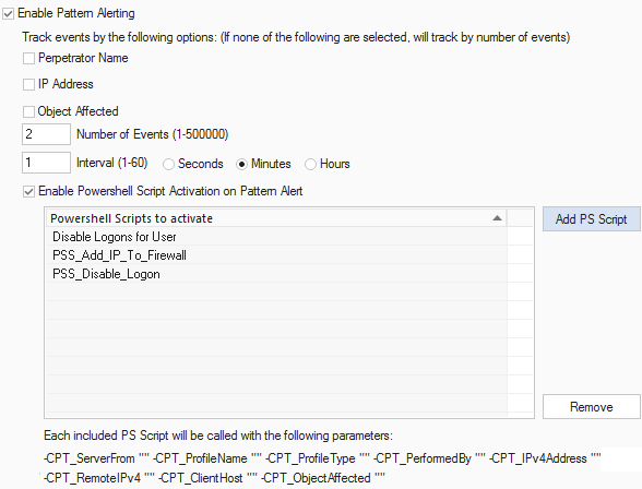 CPTRAX for Windows can automatically and immediately call one or more customer written PowerShell scripts based on a pre-defined Pattern Alert and take appropriate action to contain the threat and prevent further damage.